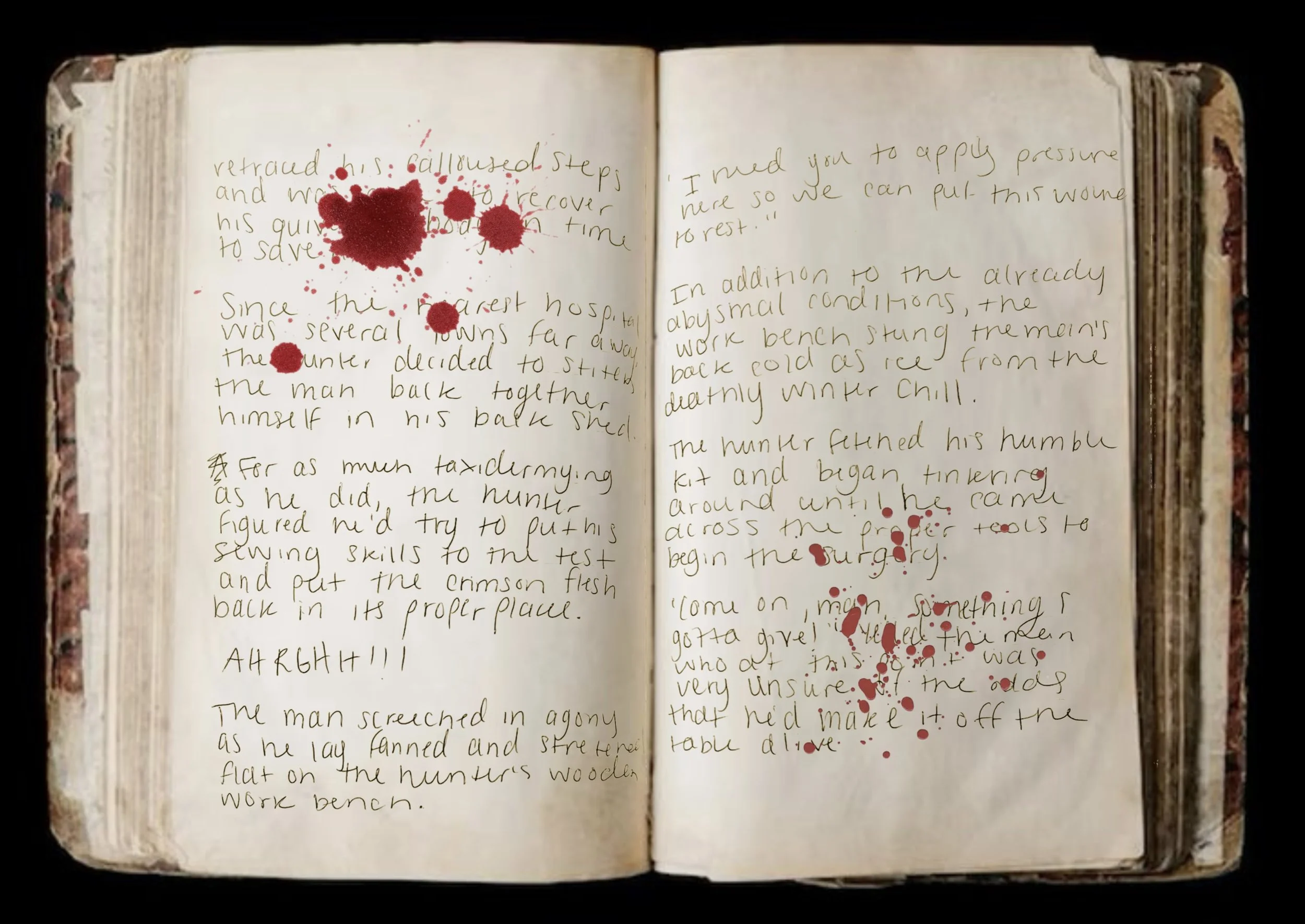 “He was shot in the snow and ransacked by bad fortune, all at once, altogether. His woodland plight grew long, tender, and tireless until it reached its wistful and bloody end. Deranged, deranged, malignant pitter-patter...”